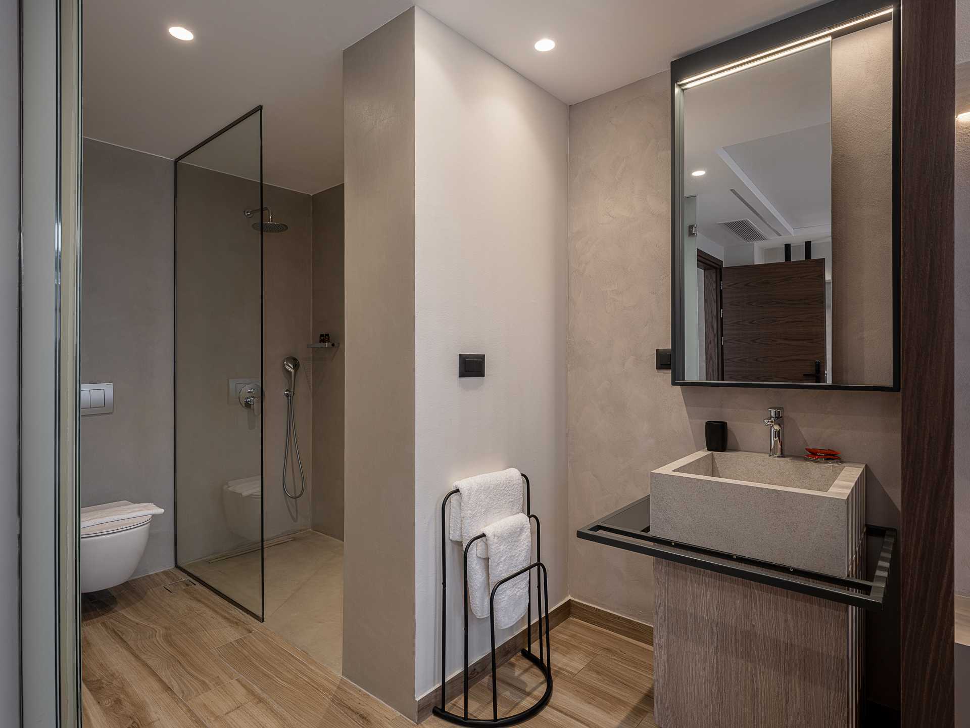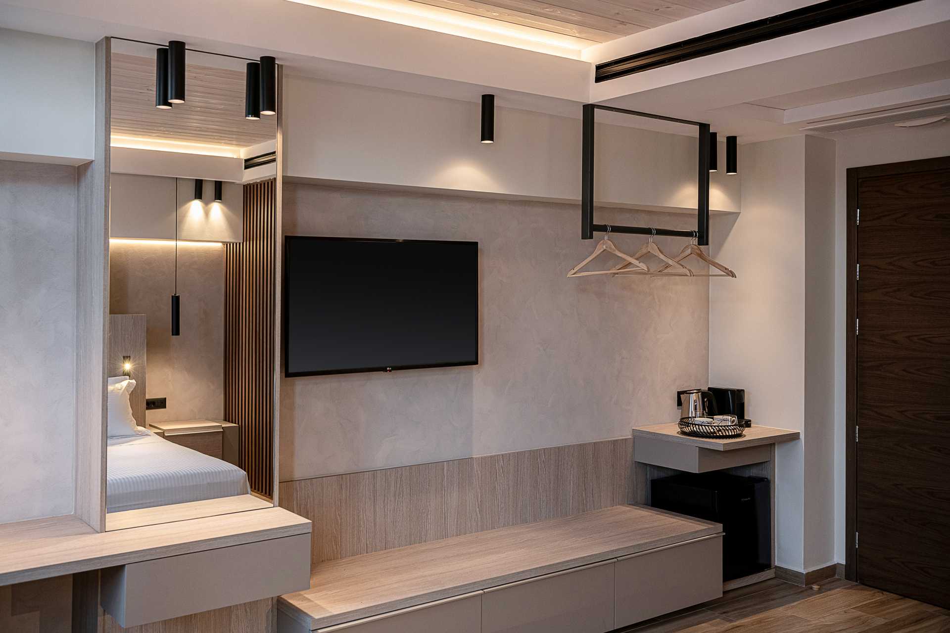 Enjoy modern amenities like air conditioning, a flat-screen TV with streaming services and satellite channels, a kettle and a coffee machine.